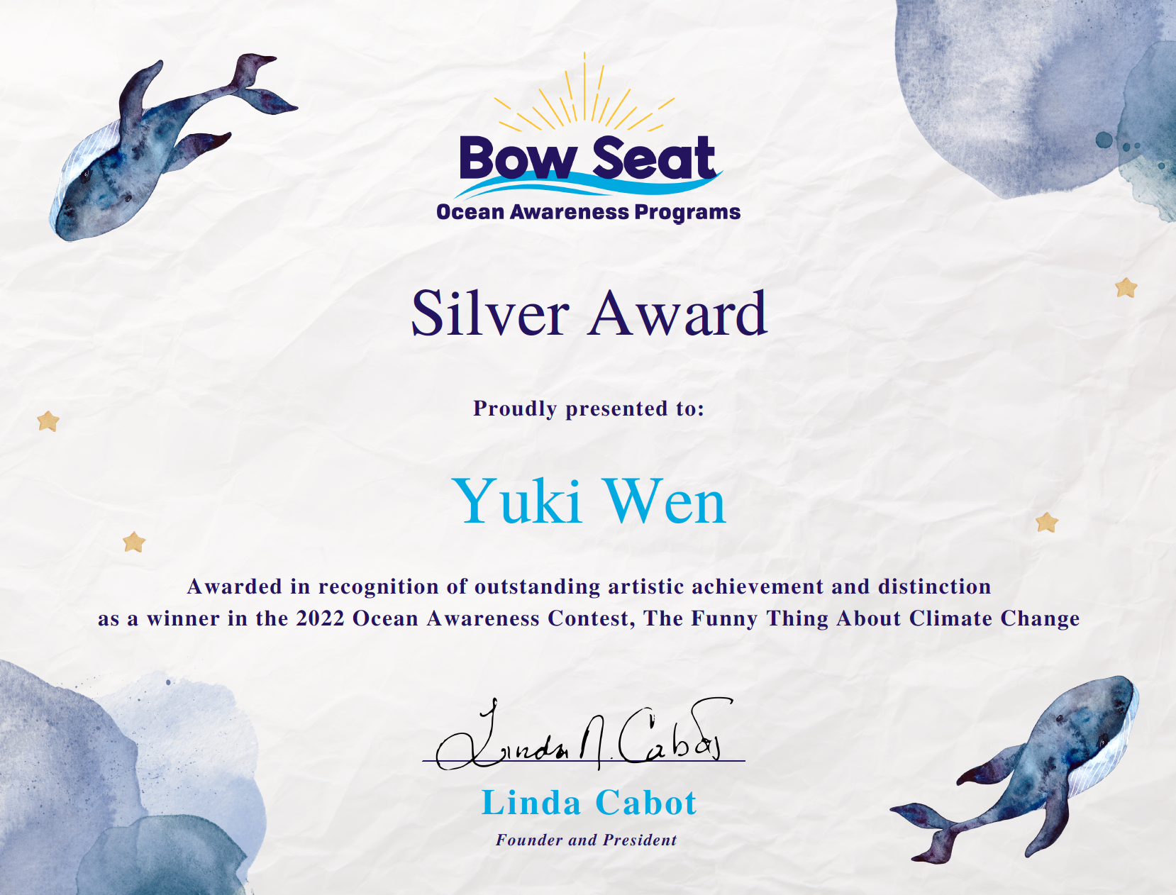 Below you will find certificates of my students' achievements at the Bow Seat Ocean Awareness Competition