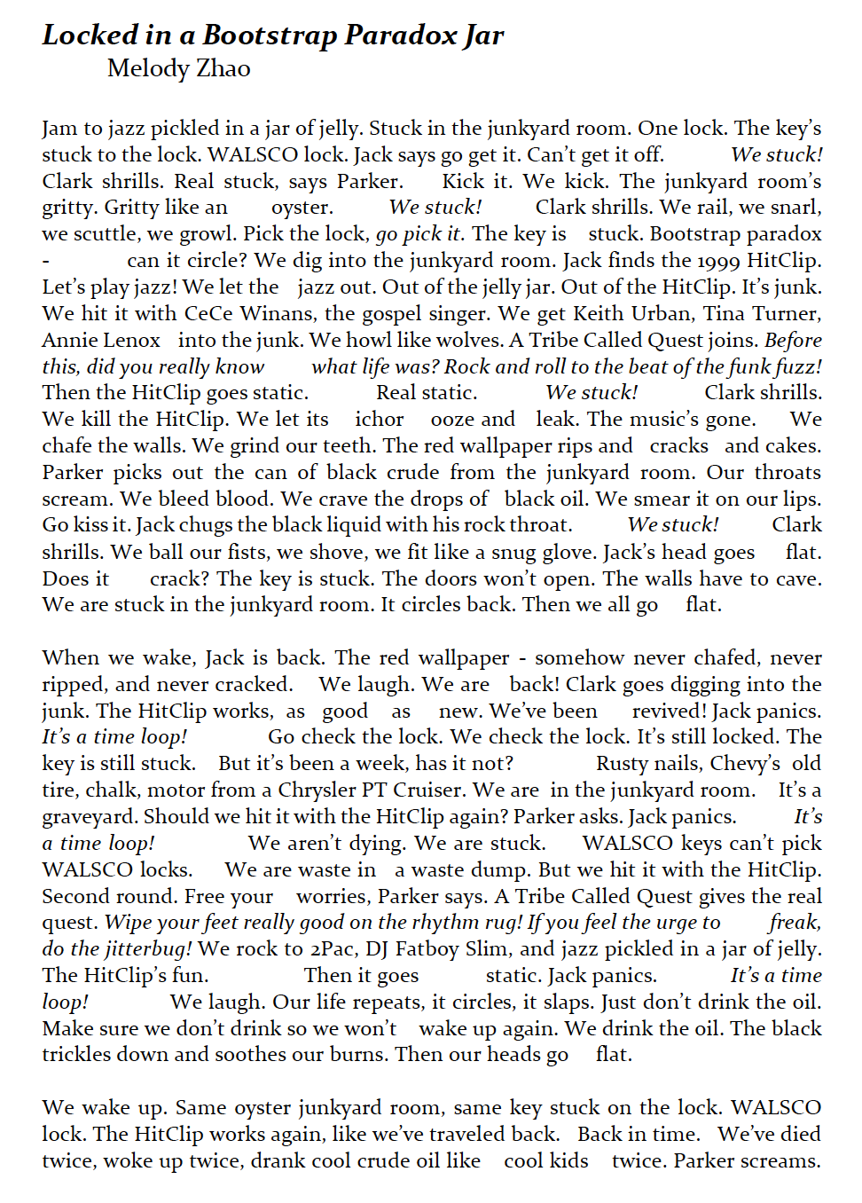 - Melody Zhao - Locked in a Bootstrap Paradox Jar (poetry)