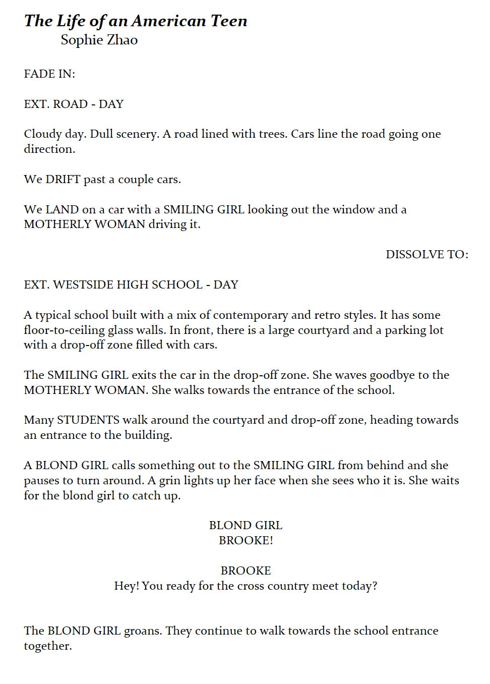 - Sophie Zhao - The Life of an American Teen (screenplay fiction)
