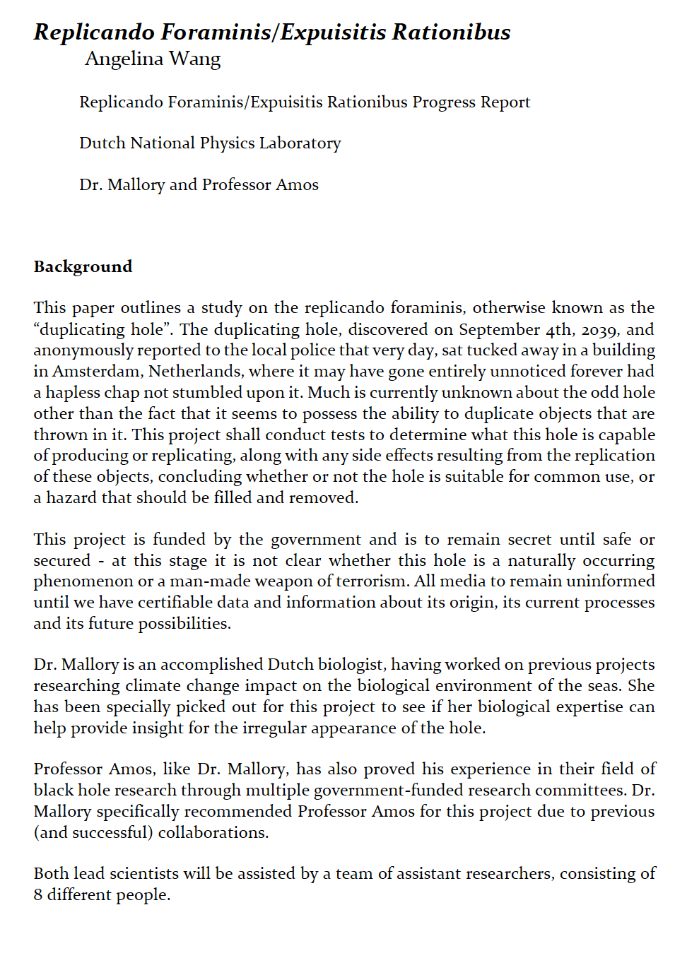 - Angelina Wang - Replicando Foraminis/Expuisitis Rationibus (science fiction)