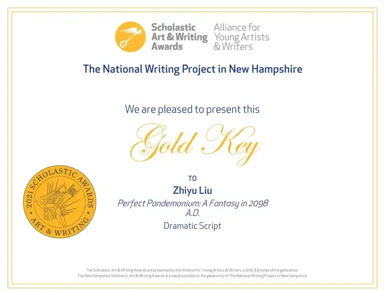 Below you will find certificates of my students' achievements at the Scholastic Art & Writing Awards